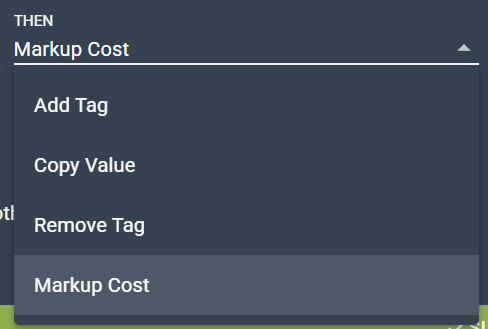 - Markup Cost: apply a numeric markup to cost on matching rows.