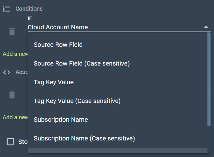 - Cloud Account Name (case-insensitive or sensitive): match the cloud account on the row.