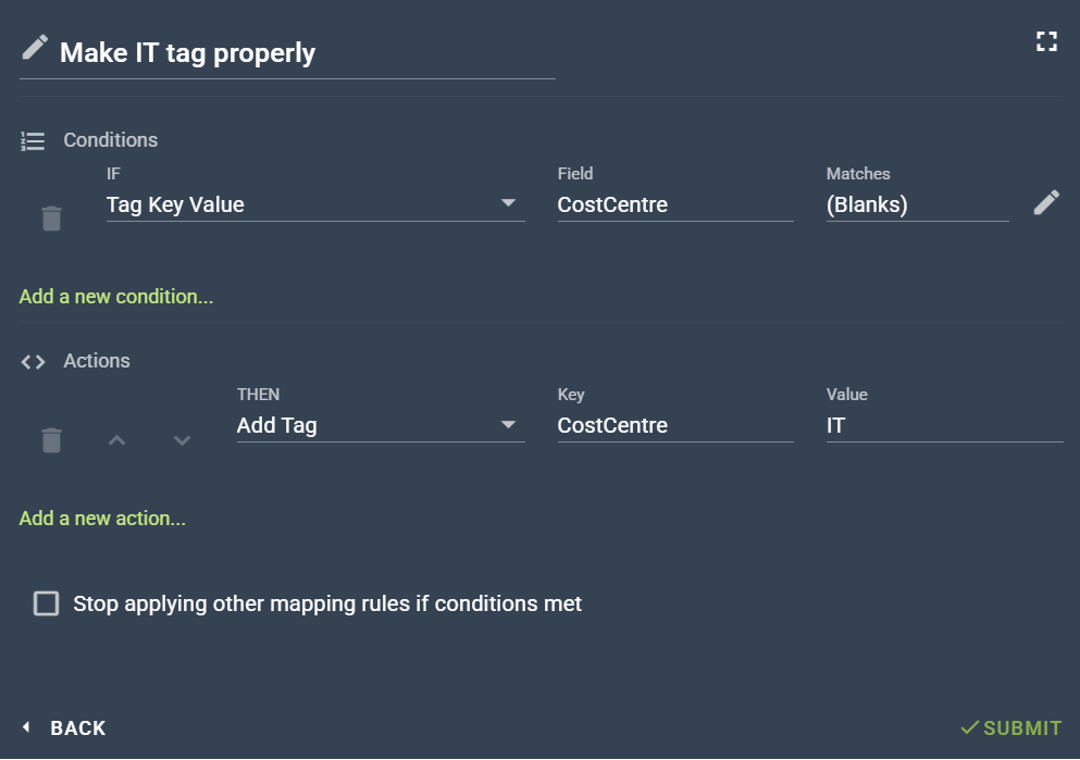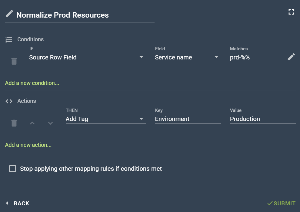 - (Optional) Enable Stop applying other mapping rules if conditions met to short-circuit.