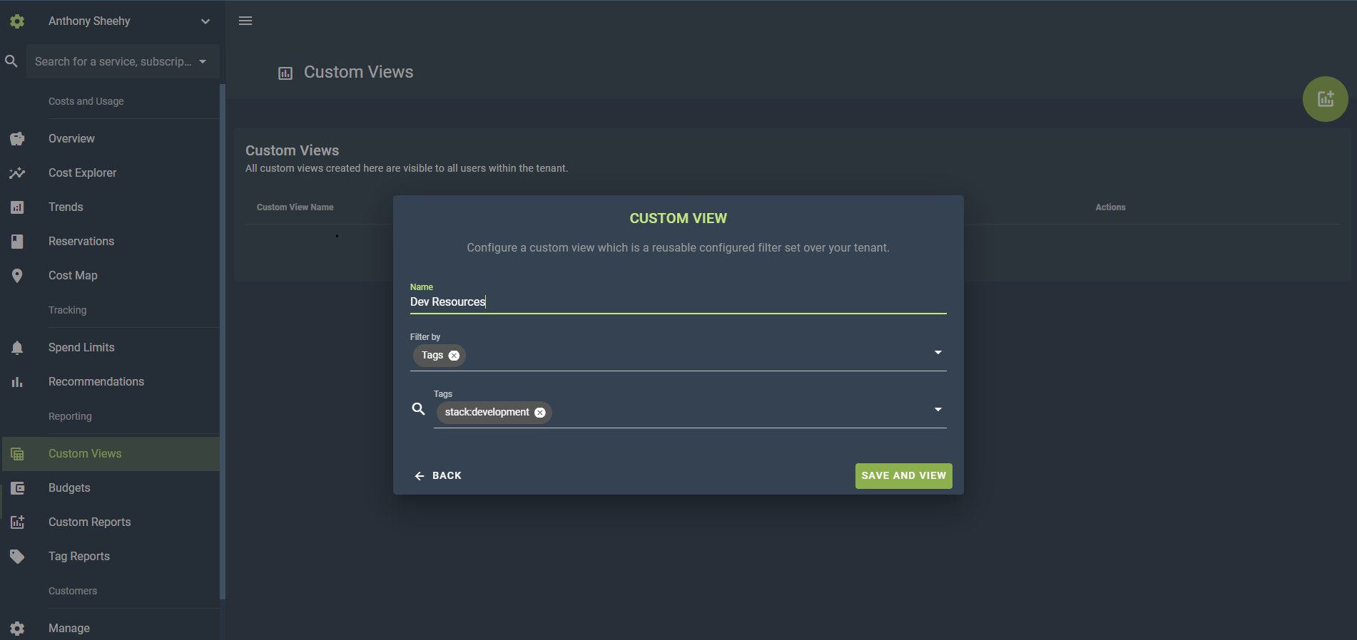 Custom Views are a cornerstone of the budgeting feature, facilitating resource grouping based on your unique needs. This functionality allows users to define sets of filters to monitor specific resources or subscriptions. It caters to diverse requirements, from targeting resources tagged for a particular customer to focusing on resources under a specific cloud provider's subscription.